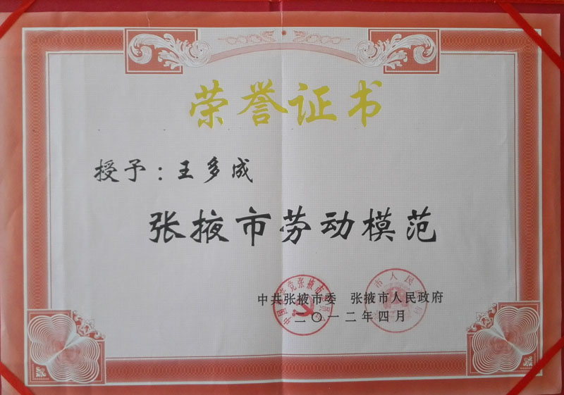 2013年榮獲張掖市科學(xué)技術(shù)二等獎…